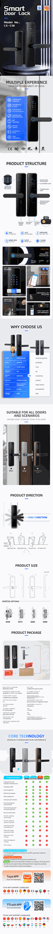 - Seguridad avanzada: la cerradura inteligente adopta tecnología de encriptación avanzada y un sistema de autenticación, que proporciona seguridad confiable. Puede estar seguro de que su hogar, oficina u otros lugares están seguros.